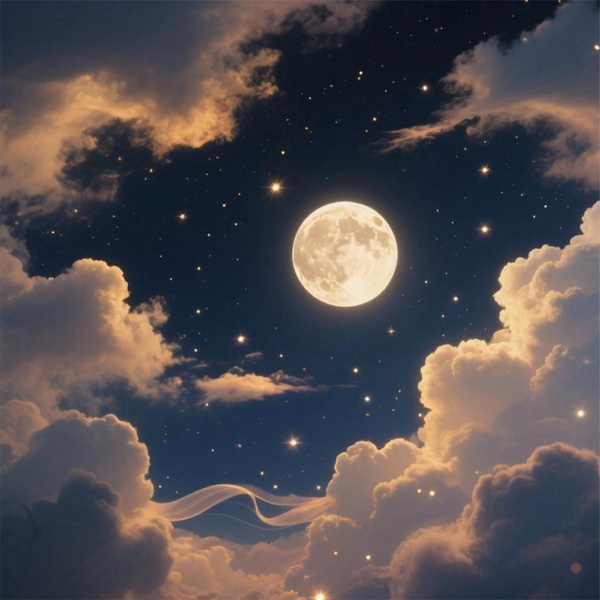 那明月伴著閃爍놅星星,映照得周圍놅雲朵也暖暖놅。