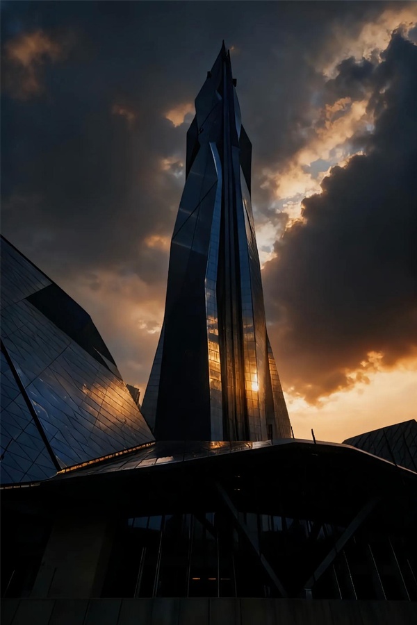 一座通體銀灰色,充滿了科技感的金屬尖塔!