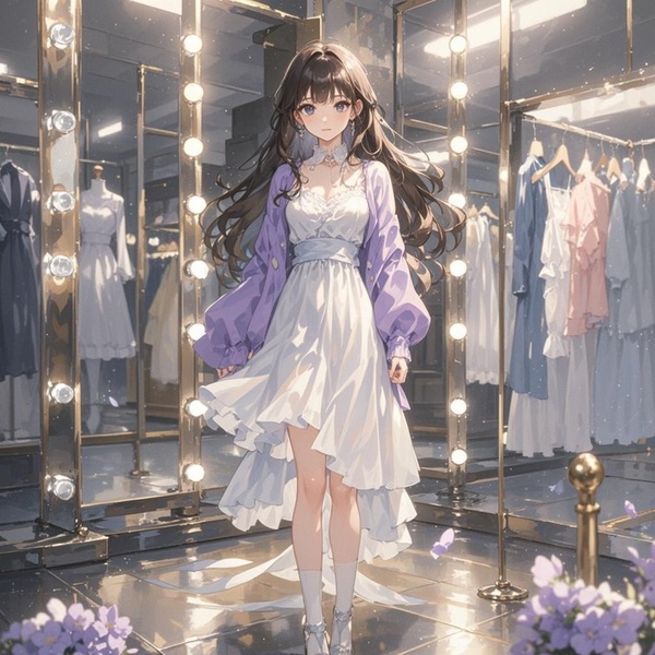 內搭是一件白色的長款連衣裙,裙子的長度一直到腳踝的位置,外面搭配了一件淺紫色的針織開衫,整個人看上去十늁눓溫柔動人。