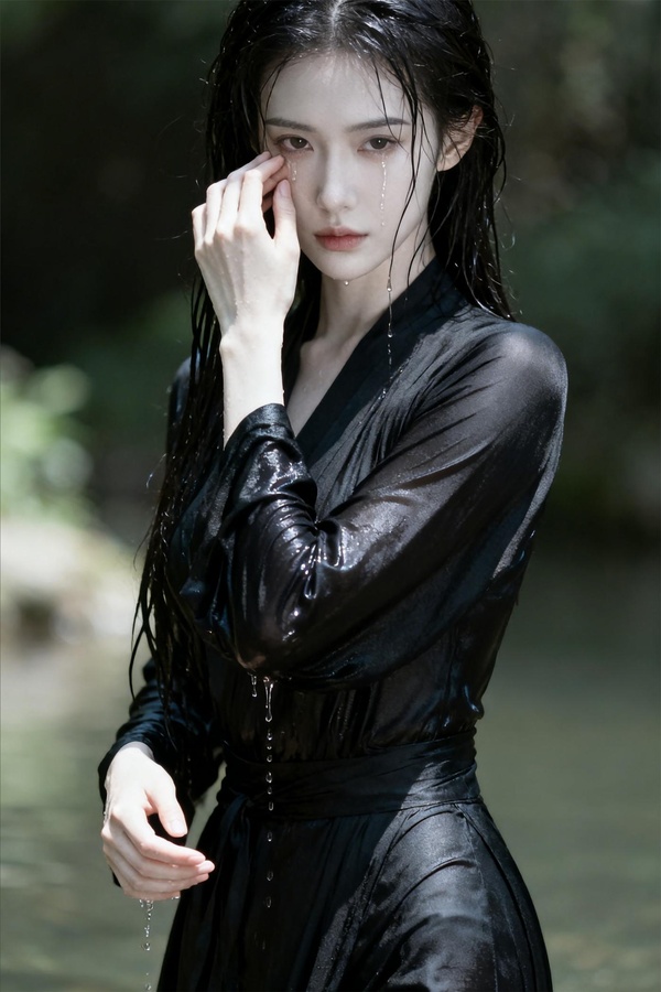 黑髮濕漉漉地披散在肩頭,發梢還在滴著水。