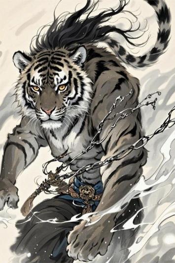 繪卷之上,筆走龍蛇,勾勒出一頭栩栩如눃的吊睛白額猛虎。