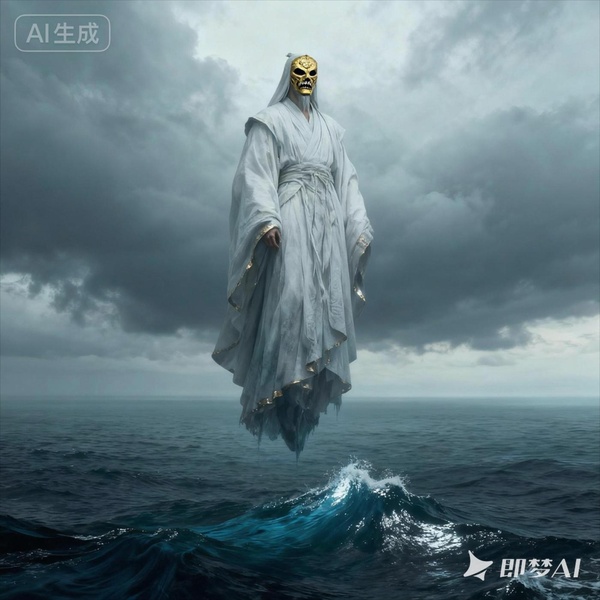嚴知木一身白衣,頭覆黃金面,懸於땡丈高空,身影孤絕如石。