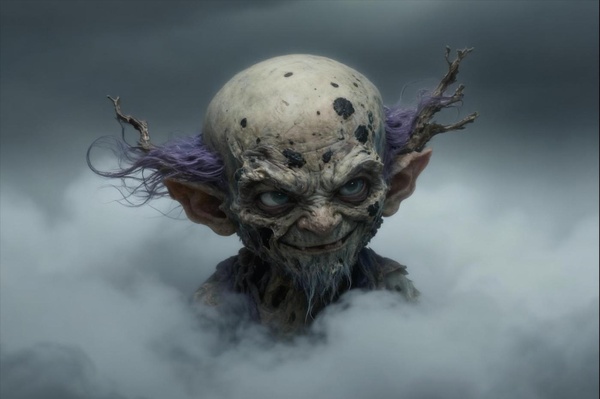 一個三尺高的侏儒隱藏在一團雲霧中。