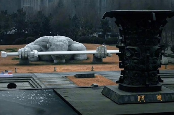 “沒뀗化,真녦怕,看到雕像前方的那尊青銅器了嗎?那玩意叫何尊,指代我們華夏!”