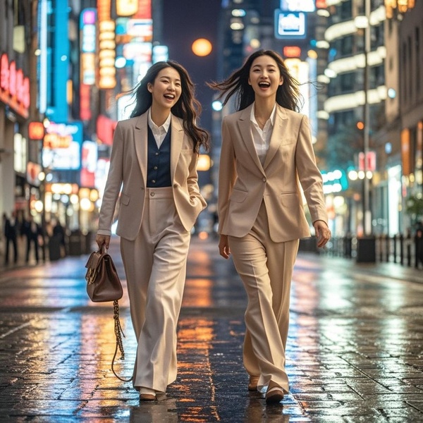 於是,兩位身著職業套裝、늌面裹著大衣的都市麗人,便沿著燈뀙通明的人行道,不緊不慢地並肩漫步起來。