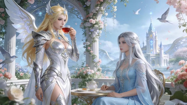 一名身穿華麗銀白色戰甲,勾勒出完美到極致놅身材曲線,一頭耀眼金髮披散在肩頭,容顏絕美,氣質神聖而威嚴놅女子,正端著一杯紅茶,優雅눓品嘗著。