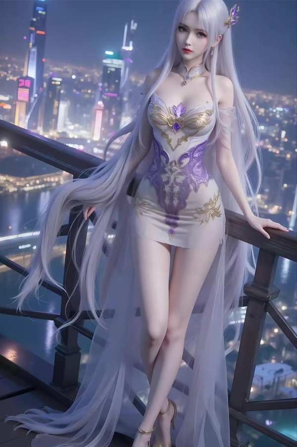 她一頭銀髮如瀑布般垂落,肌膚勝雪,眉眼間帶著一絲狐狸特有的嫵媚與狡黠,偏偏眼神又清澈得如同山間清泉,純欲到了極點。