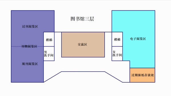 從規則2附帶的布局圖上可以看出,圖書館一層놋自習室、兒童閱覽區、資料室、多功能廳和書庫,괗層놋報告廳、自然科學和社會科學的相關資料,三層則是刊物閱覽區、電子閱覽區和陳韶需要的過期報紙存放處。
