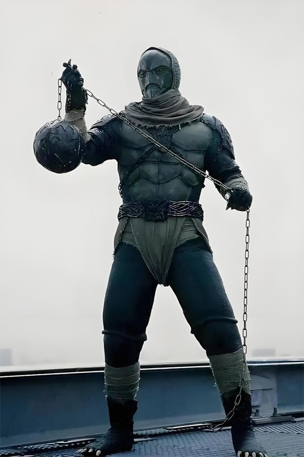 而在對面,一個皮膚褐色,體型魁梧,全身覆蓋堅硬的甲殼,手中拿著一把鐵鏈球的怪人抬頭看著直衝而來的假面騎士W,心中一陣不屑。