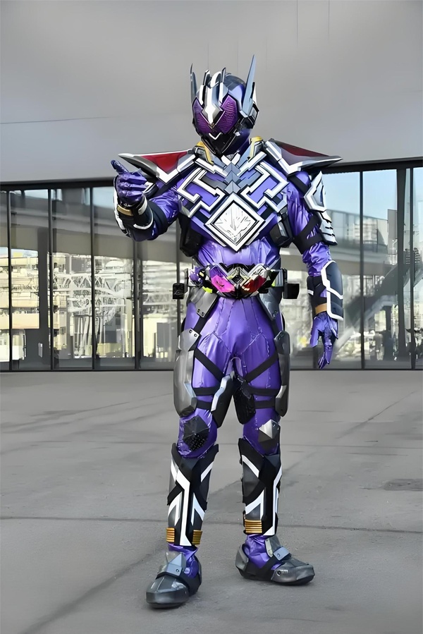 녤以為會是某個怪人,但對方的模樣卻讓他愣了下神,因為對方是假面騎士的造型,以紫色為主,其腰間的驅動器跟他的雙重驅動器造型也有些類似,都是W形狀的。