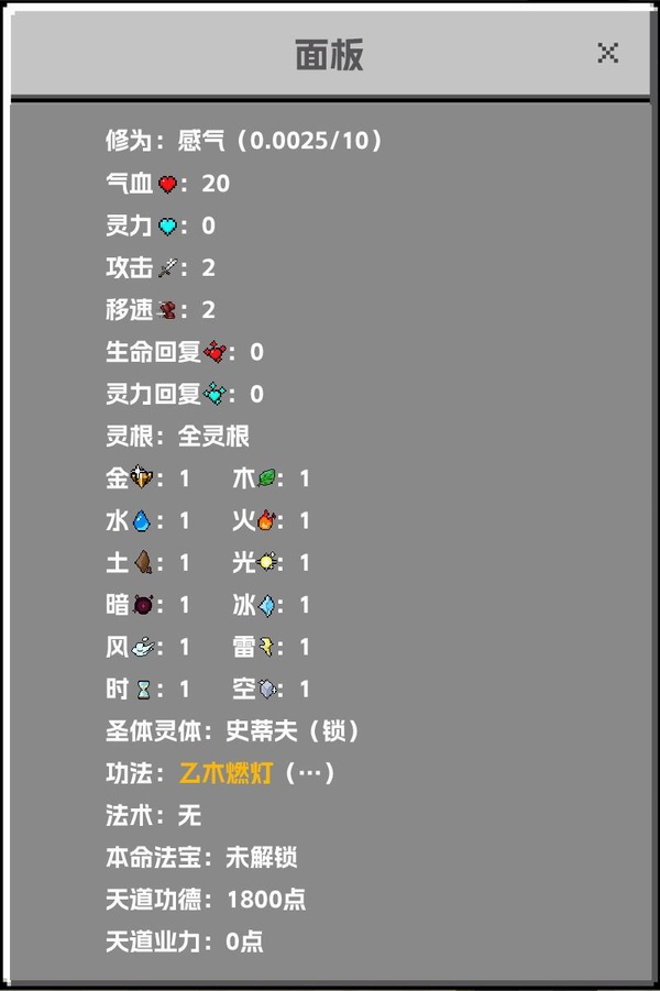 修為:感氣(0.0025/10)