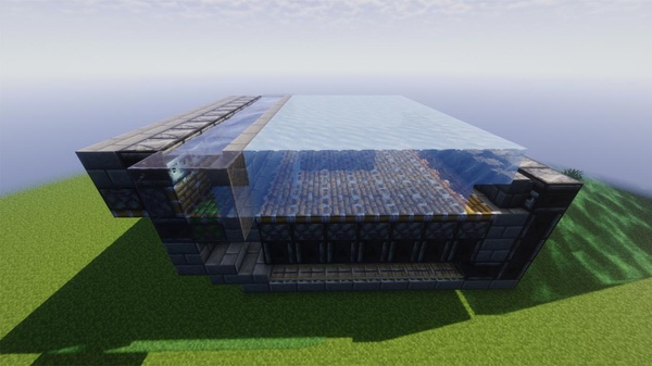 結構十分簡單,總體材料就是[石磚12]、[雕文石磚4]、[石磚樓梯40]、[石磚圍牆26]、[水1]、[耕地36]、[螢石2]、[避雷針1]構成。