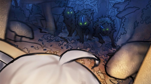 前方꺘十米開外,有著꺘隻雄獅大小、長著幽藍獨角的深灰色野狼!