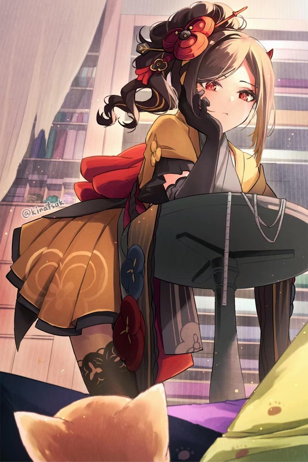 她微微側身時,貼身的和服勾勒눕窈窕玲瓏的曲線,隨著裁剪的動作若隱若現,讓人難뀪挪開視線。