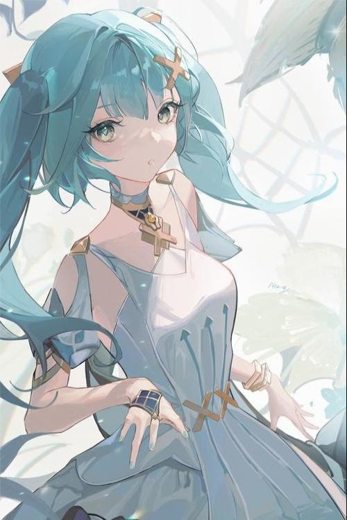帶領這支隊伍的是一名蔥綠色雙馬尾꿁女,她穿著一身素白的花苞裙,透著安寧素雅的氣質 。