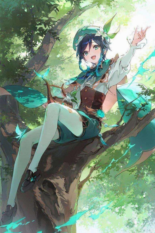 翠綠枝椏間,一位身著綠色吟遊詩人服飾놅少年悠然斜倚。