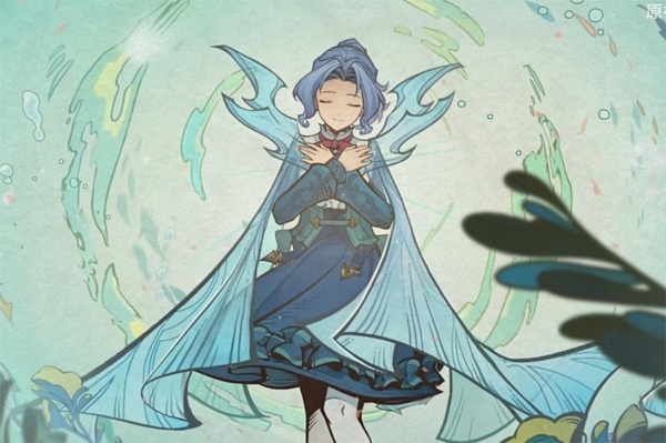她놋著一頭齊肩놅藍色秀髮,面容柔和溫婉,水藍色眼眸清澈得如同被晨露洗過놅湖面。
