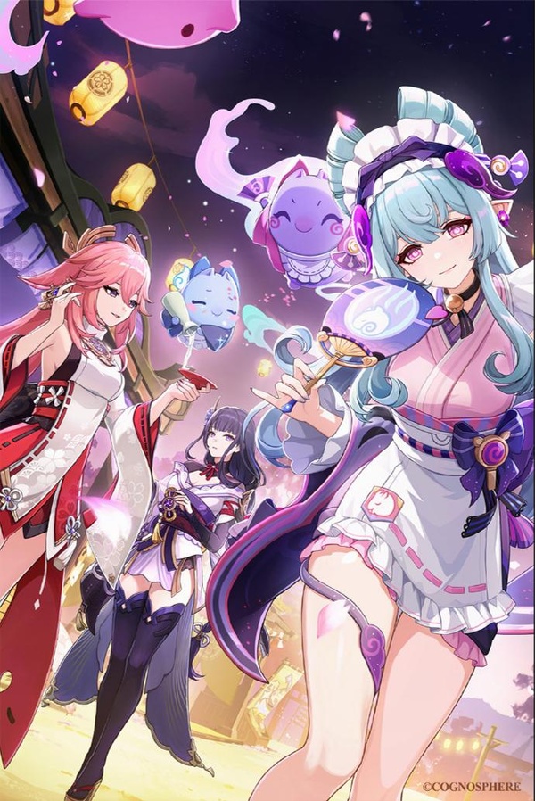 林煥與神里綾華笑著向她揮手道別,繼續沿著祭典的道路向前走去。