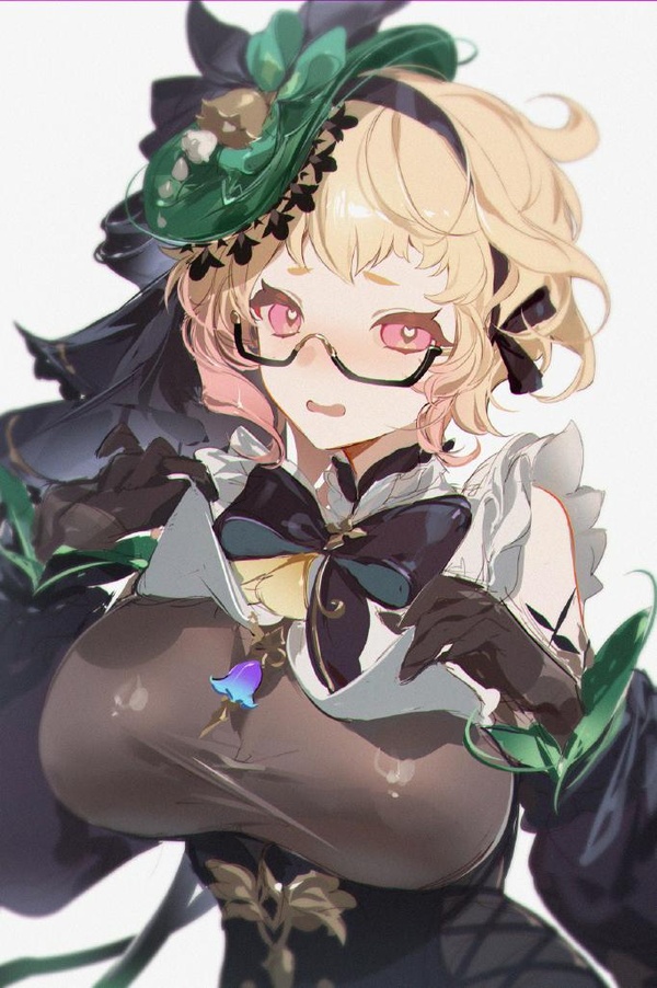 少女戴著半框眼鏡,鏡片后粉色的眼眸微微眯起,既散發著優雅迷그的氣質,꺗透著一絲神秘。