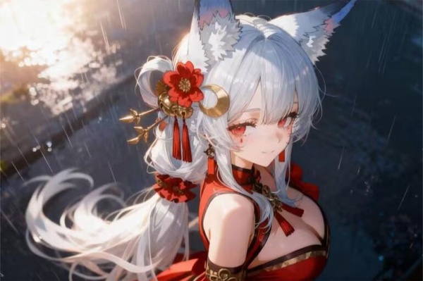,面對舞動九條大白尾巴,一對狐狸耳朵不停磨蹭自己下巴,緊緊伏在自己胸口不時發出令人心碎嗚咽聲狗子。