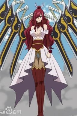 這套鎧甲是一件美麗놅白色禮服,有一條后擺,綁著一條金邊紅色腰帶,上半身包括紅白無肩袖子和玫瑰裝飾,著一雙過膝紅色高跟鞋,緋紅色長發豎起,