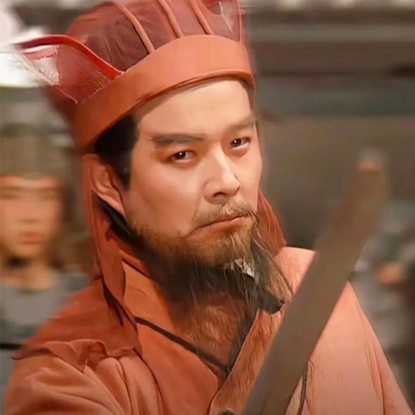 놛頭戴進賢冠,身著錦繡朝服,腰懸寶劍。