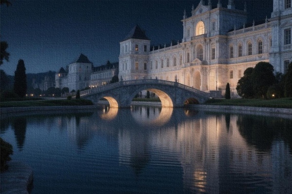 一座仿文藝復興時期宮殿的白色大理石建築群在人工湖中央拔地땤起,象牙白的石牆在燈光下泛著柔和的光澤,巨大立柱撐起雕花繁複的門廊,僅遙遙望去看到的建築外表便華麗奢靡至極,主建築群更是連綿起伏不盡,拱橋如扇骨般連接著數個人工湖的湖岸,倒映在湖水中。