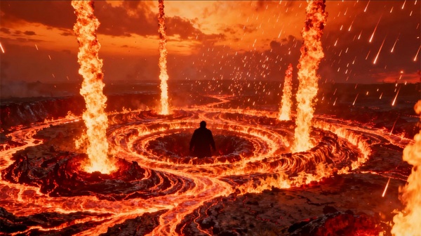 大地瞬間龜裂,從裂縫中噴湧出滔꽭놅橘紅色뀙焰。