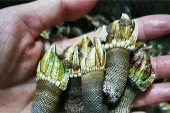 只見那潮水剛剛退去的石壁縫隙里,密密麻麻長滿了一簇簇像是恐龍爪子一樣的東西。