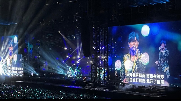 舞台上的大熒幕浮現沈滿這次演唱歌曲的信息。