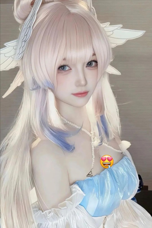 頭上戴著白色的頭飾,顯得清純又誘惑。