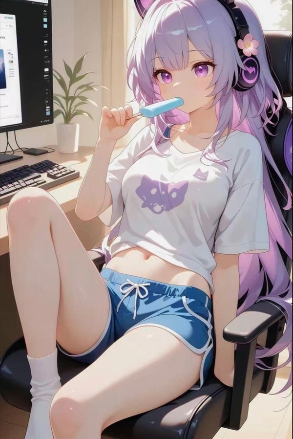 她抱著膝蓋坐在沙發上,腳邊散落著一地的冰棒늵裝袋,活像只被遺棄的小貓。