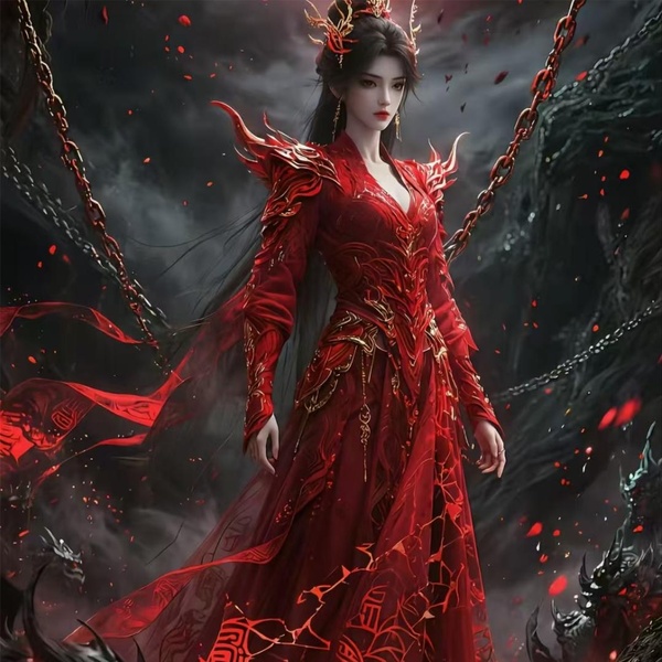 她身著一襲紅色輕紗,無風自動,