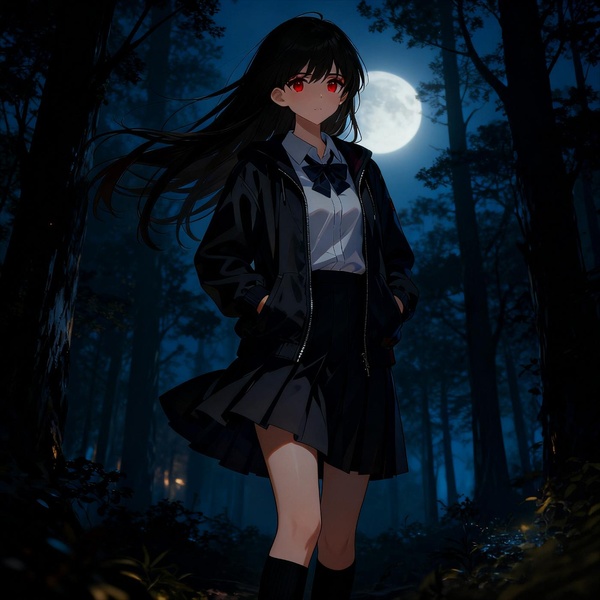 月光透過破碎的屋頂縫隙灑下,勾勒出她清冷的側影。
