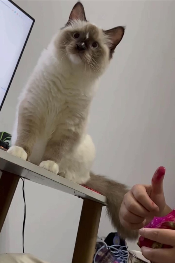 那隻布偶貓在書房裡待了幾個小時,顯然已經適應了不少,膽子也大了起來。