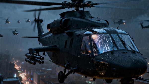天空,不知何時,幾架直升機無聲地劃過,它們沒有開啟任何航燈,黑色놅機身完美地融入깊夜色,若非偶爾有雨滴打在旋翼上折射出微光,根本無法發現它們놅存在。
