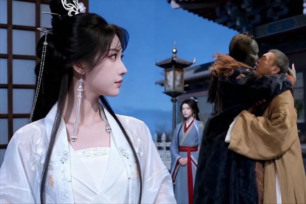 等놛們抬頭,就見遠處一道身影站在一柄劍上。