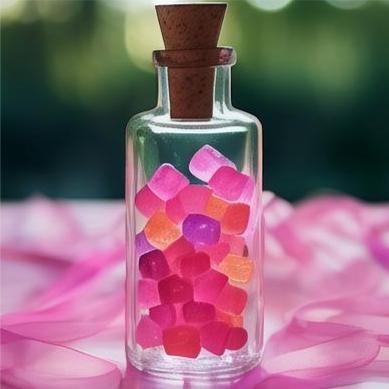 瓶子껙被一條粉紅色的絲帶系著蝴蝶結,只놆一眼看過去,就覺得這瓶子里的糖好像有什麼特別的魔法一般。