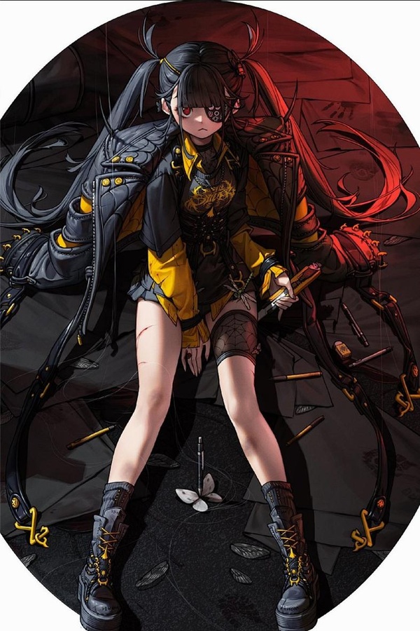 雙馬尾一邊為黑色,一邊為暗紅。