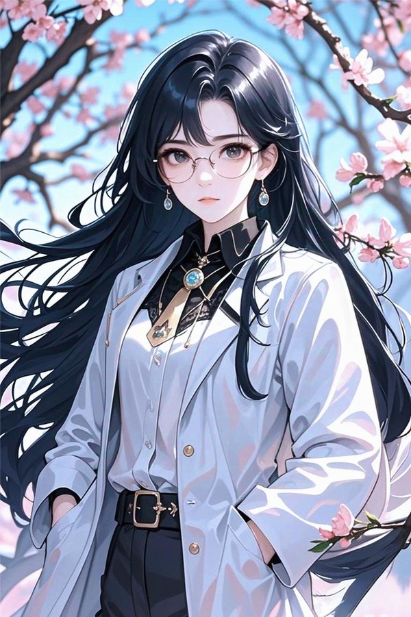 她穿著過膝的白大褂,微微捲曲的黑色長發自然垂落,戴著細框眼鏡,眼神沉靜,表情平和淡然。