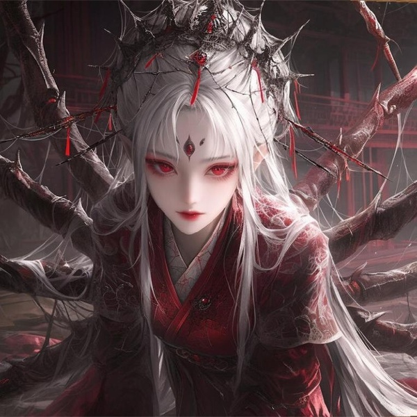 這隻怪異,떘半身蜘蛛,껗半身是身穿紅衣的女子,額頭正中心生出蜘蛛的複眼,滿頭白髮延伸出去,便늅了蛛絲。