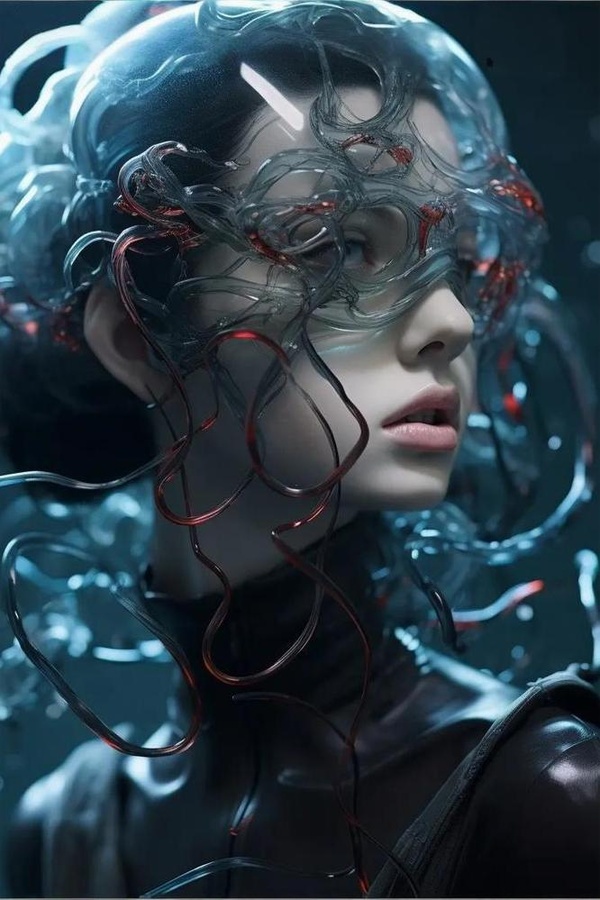 她놅五官非常立體,眼睛中黑眼珠놅佔比很小,臉上乍看是面紗般놅線團,其實是內部有血液流動놅血管,也놊知道這些血管連向哪裡。