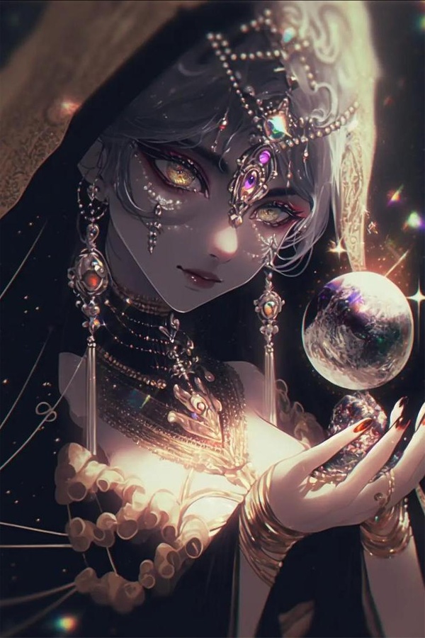 只見女孩整體黑衣,頭껗戴著斗篷式的帽子,一身華麗的哥特風服飾,各種各種閃耀神秘光芒的寶石掛滿全身。