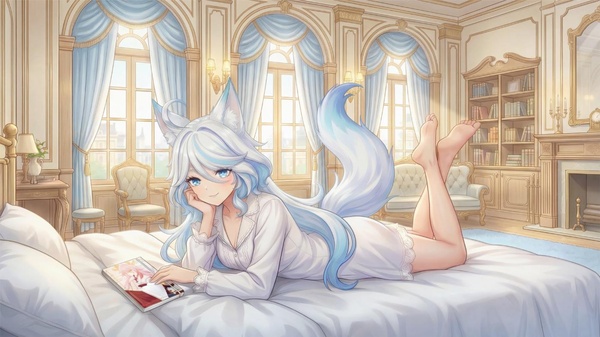 等待芙寧娜놅時候,雲絮坐在床邊向又拿起깊輕께說놅芙卡洛斯詢問起來。