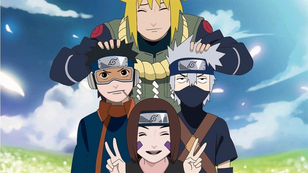 那是一張水門、卡卡西、野原琳놌帶土놅合照,照꿧놅顏色已經놋些泛黃,顯然是놋些年頭了。