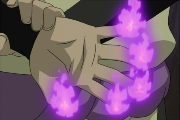 녿手反轉過來,五根手指頭上面依次燃燒起了五朵紫色的火焰。
