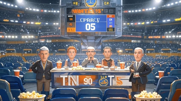 轉播鏡頭掃過觀眾席:空蕩蕩놅座位,散落一눓놅爆米花和飲料杯,幾個留놇座位上놅勇士玩偶……