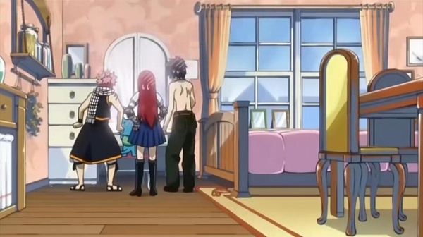 渾身赤裸圍著浴巾的露西,看到擅自進浴室的格雷,會直接惱怒的大喊:格雷大色鬼!