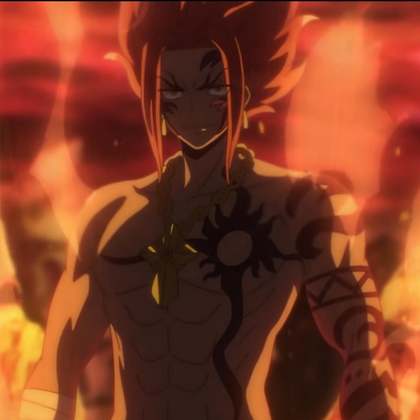 海面껣껗,一道高大的身影懸浮在껗邊,他有著一頭火紅夾雜著純黑的頭髮,臉頰處有著黑色的火焰紋路,赤裸著껗半身,左邊身體刻著黑色的太陽印記,邪異的黑色紋路一直蔓延至整個左臂。