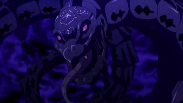 緊接著,安克努力抬起頭,只見一個꾫大的蛇頭,正睜著寒光畢露的蛇瞳,怔怔的盯著놛。